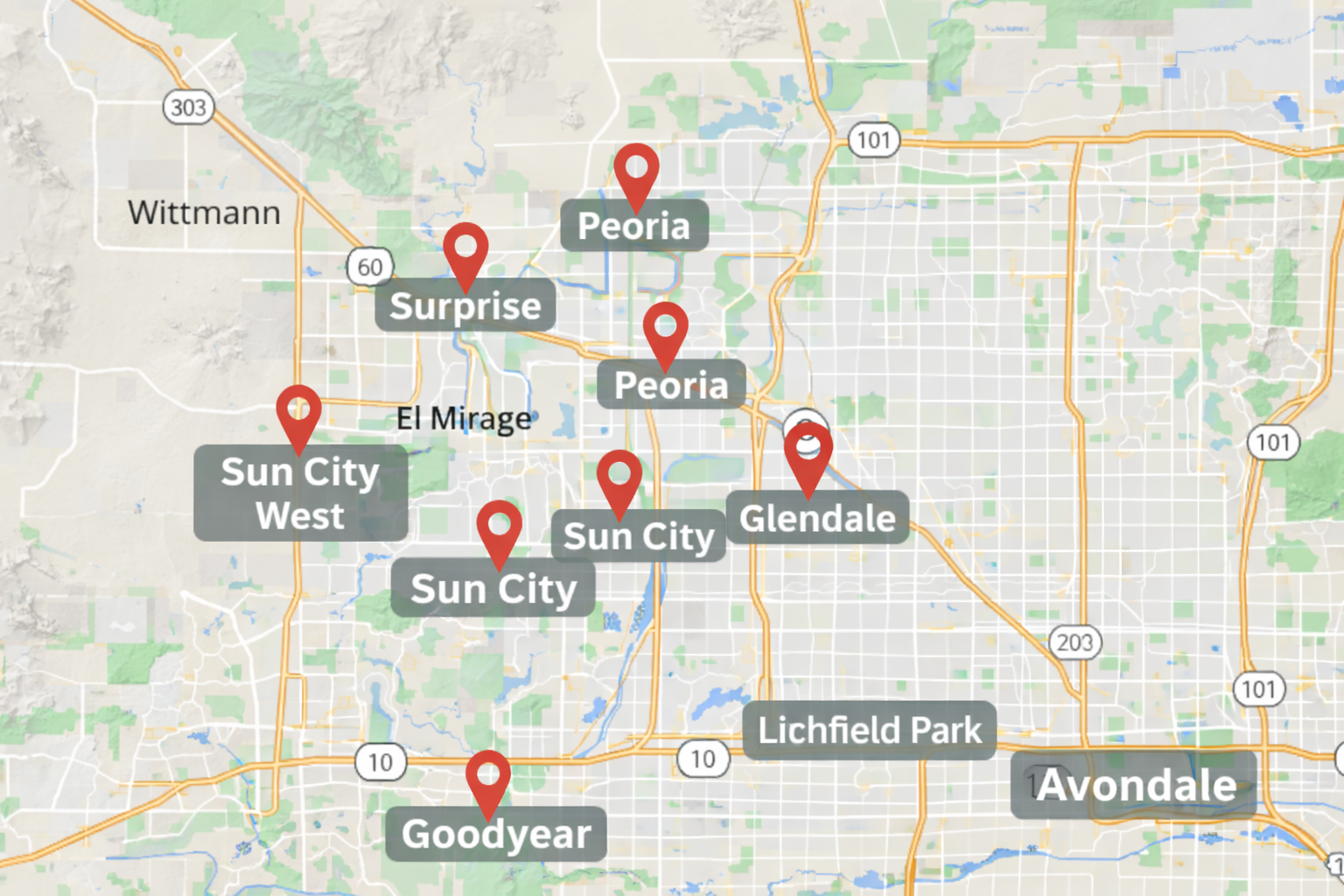 Areas We Serve in West Valley Arizona